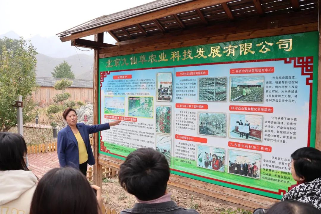 下午,师生一行人来到位于清水镇台上村的“妇字号”基地——北京聚兰兴养殖专业合作社,并在合作社尚显兰理事长的带领下展开参观学习。聚兰兴养殖专业合作社以“企业+合作社+村集体+农户”模式开展工作,优先选择建档立卡低收入户参与,以绩效分成形式调动中低收入户的积极性,合作社共为365户低收入户创造了659个就业岗位,并通过开发林下种植新技术解决了1095人的就业问题。漫步在霍山石斛、灵芝等名贵中草药材的培养基地,同学们感受到了科技创新对农业发展、农民增收的支撑作用。
