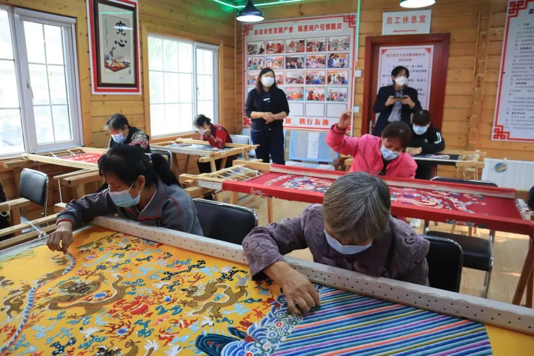 布韵传奇手工编织专业合作社的“巧娘”们正在织绣
