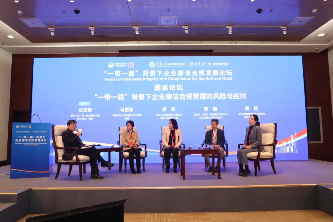 圆桌论坛环节由清华大学一带一路战略研究院执行院长史志钦教授主持。中国政法大学民商经济法学院教授马更新、中邮人寿保险股份有限公司法律合规部总经理娄英、爱立信(中国)移动通信有限公司东北亚地区首席合规官郭楠、北京光曦国际咨询有限公司创始人兼总经理周鋡围绕“一带一路”背景下企业廉洁合规管理的风险挑战与应对措施进行了充分交流,为下一步企业开展如何廉洁合规建设提出了针对性的对策建议。
