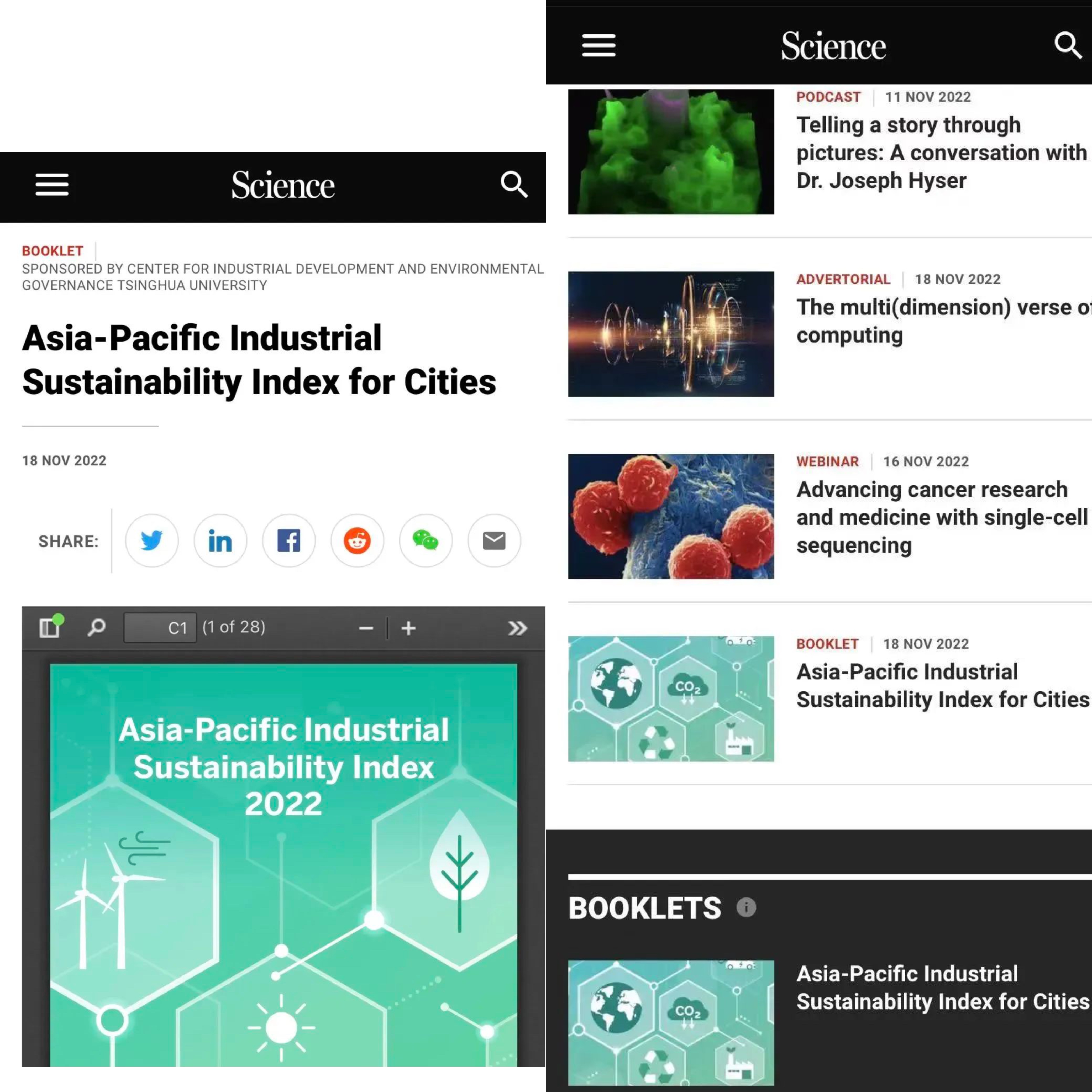 作为全球第一个在城市层面评估产业可持续性的指数,AP-ISI2022英文版已于今年11月18日在亚太经济合作组织(APEC)第二十九次领导人非正式会议(泰国)上发布,并同日在美国杂志《科学》(Science)在其官网面向全球发布。