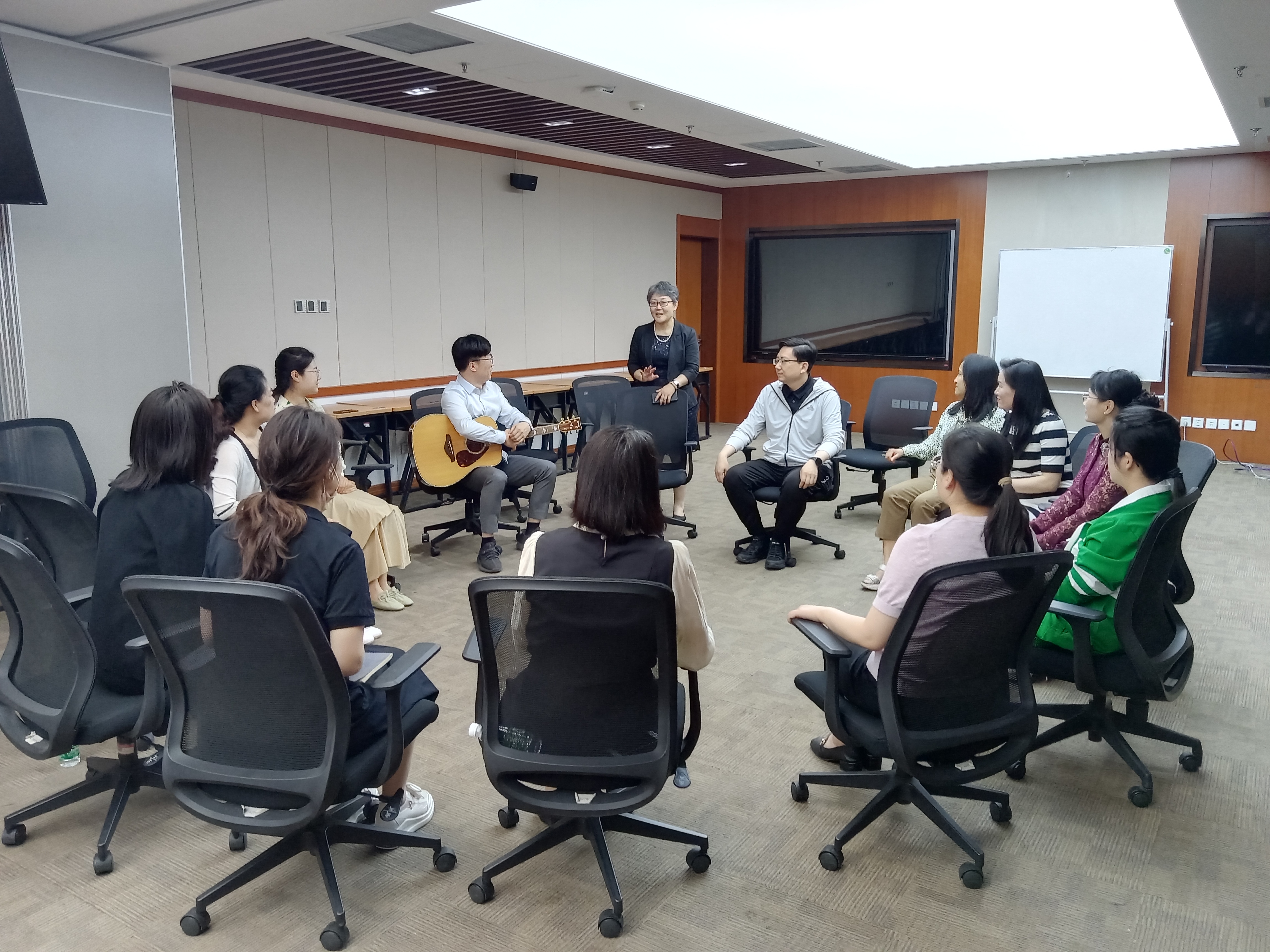 6月2日,公管学院人事办、研工组、工会联合举办了“释放压力•遇见最美的自己”音乐减压活动。邀请中国注册音乐治疗师、国家二级心理咨询师、美国鼓圈引导师、中国首批歌唱心理治疗师孔祥阳老师指导活动。学院党委副书记兼副院长谢矜主持活动。十余位教职工参加活动。