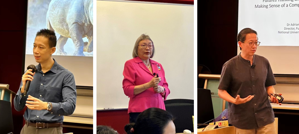 从左至右分别是李光耀公共政策学院治理与经济政策研究所Woo Jun Jie博士、LKYSPP执行教育顾问Eliza Quek主任、新加坡国立大学校长办公室Adrian Kuah博士