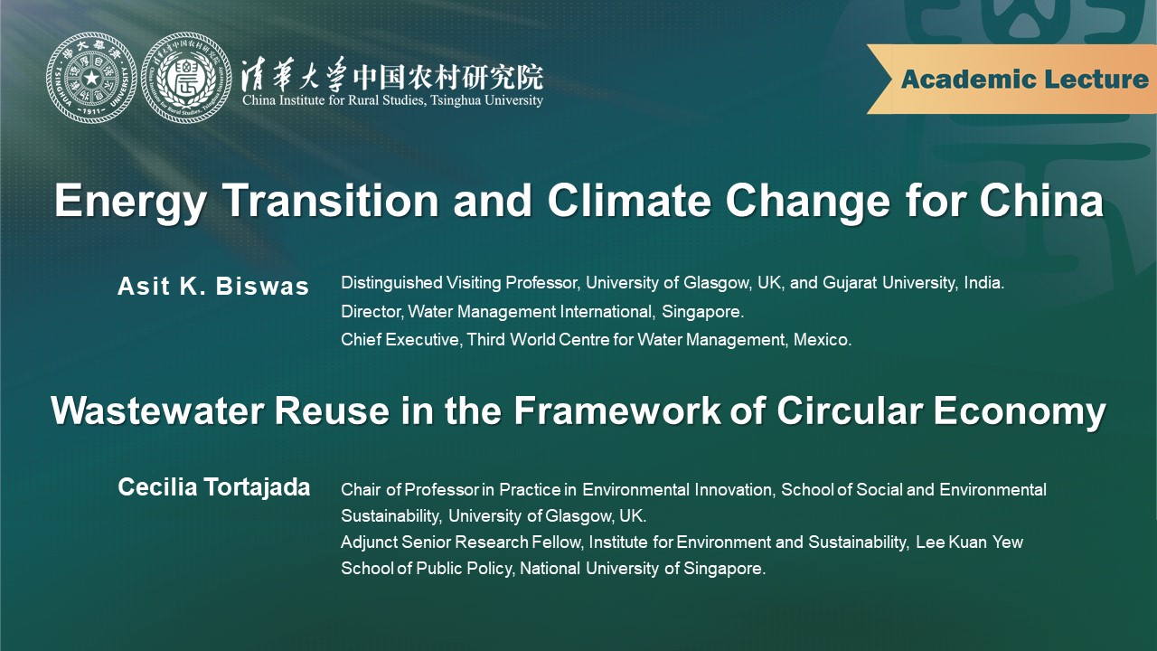9月13日下午,英国格拉斯哥大学杰出客座教授、新加坡国际水资源管理中心主任阿斯特·彼斯瓦斯(Asit K. Biswas)教授,英国格拉斯哥大学社会与环境可持续发展学院讲席教授、新加坡国立大学李光耀公共政策学院环境与可持续发展研究所高级研究员塞西莉娅·托塔哈达(Cecilia Tortajada)教授做客清华大学中国农村研究院学术前沿讲座,分别作了题为“中国能源转型与气候变化”和“循环经济框架下的废水再利用”的演讲。清华大学公共管理学院副院长、中国农村研究院执行院长王亚华教授主持讲座。