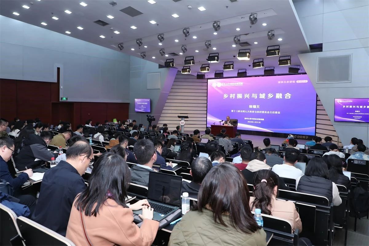 陈锡文从乡村振兴、粮食安全、城乡融合三个方面进行演讲。他指出,要与时俱进地领悟和推进乡村振兴,尤其是从党的十九大提出实施乡村振兴战略到党的二十大提出加快建设农业强国,要从世界百年未有之大变局和中国特色社会主义新时代的主要矛盾两方面理解和推进。