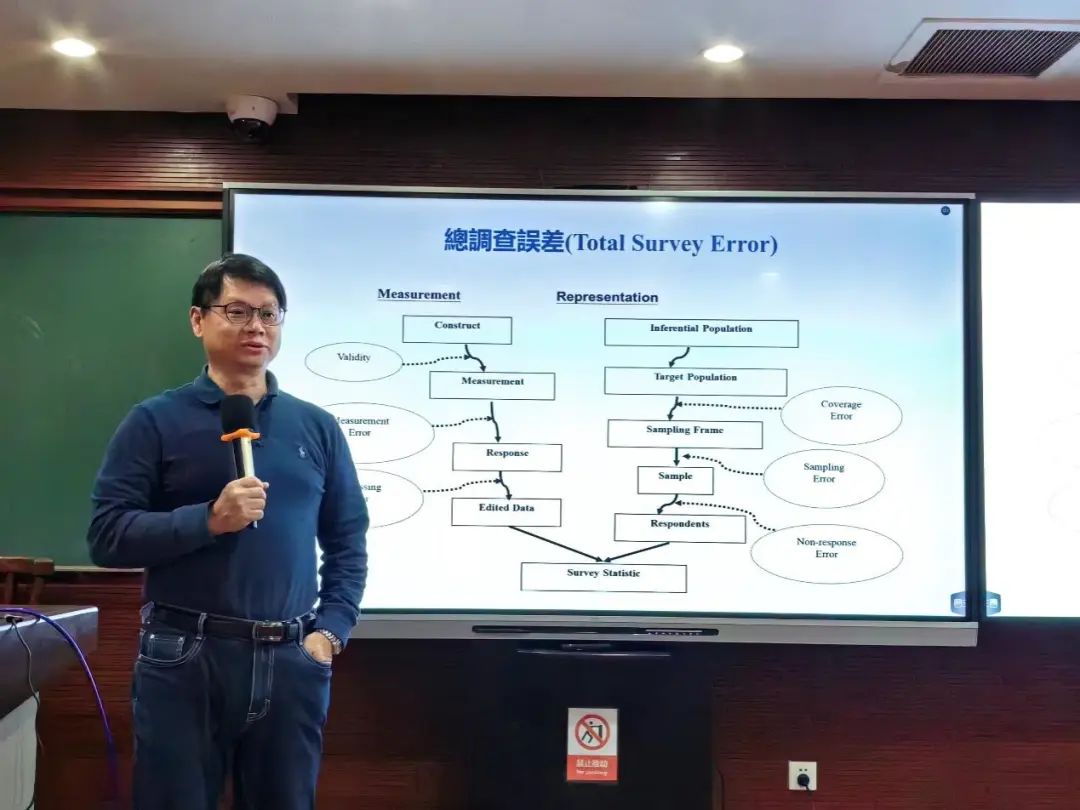 张佑宗教授从传统民意调查的研究设计出发,分析了电话调查、入户调查、手机调查、网络滚动调查等调查方法的误差来源以及抽样和执行中可能会遇到的问题,提出大规模网络会员制资料库作为新兴调查方法的技术优点与学术价值。网络资料库调查已在美国兴起并日益成为欧美民意调查的主要方法之一,相关的学术发表和民调报告层出不穷。他介绍了由他本人创设并主持的台大动态民意调查计划(National Taiwan University WebSurvey,简称NTUWS),NTUWS通过多种方式招募会员,通过验证的用户便成为平台的潜在受测者。进行特定的调查计划时,可在此抽样样本库中通过分层抽样等方法抽取被试者。相较于传统面访,NTUWS提供了一套标准化、较少受人为因素干扰的样本接触及施测机制,并可随研究需求缩放及持续征补调查样本,从而有效克服了传统调查方法的一些难题。