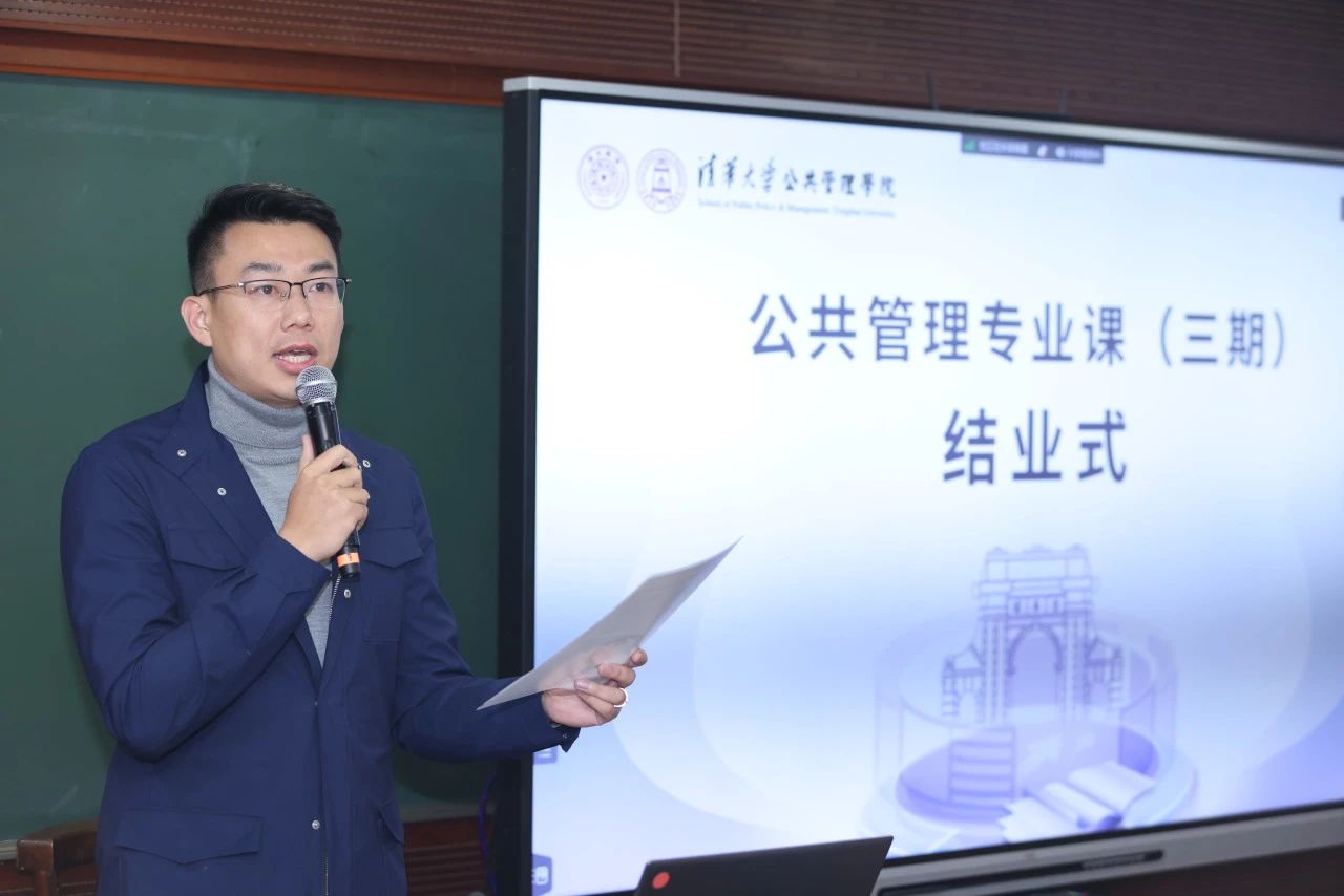 11月26日,由清华大学公共管理学院主办的“公共管理专业课(第三期)”在学院323教室顺利举行了小组答辩和结业式,本次活动通过线上线下方式进行。清华大学公共管理学院院长助理、干部教育中心主任刘辉,院长助理、案例中心主任慕玲,教授韩廷春,学科规划办主任曹峰出席,本次活动由公共管理学院干部教育中心副主任李亚辉主持。