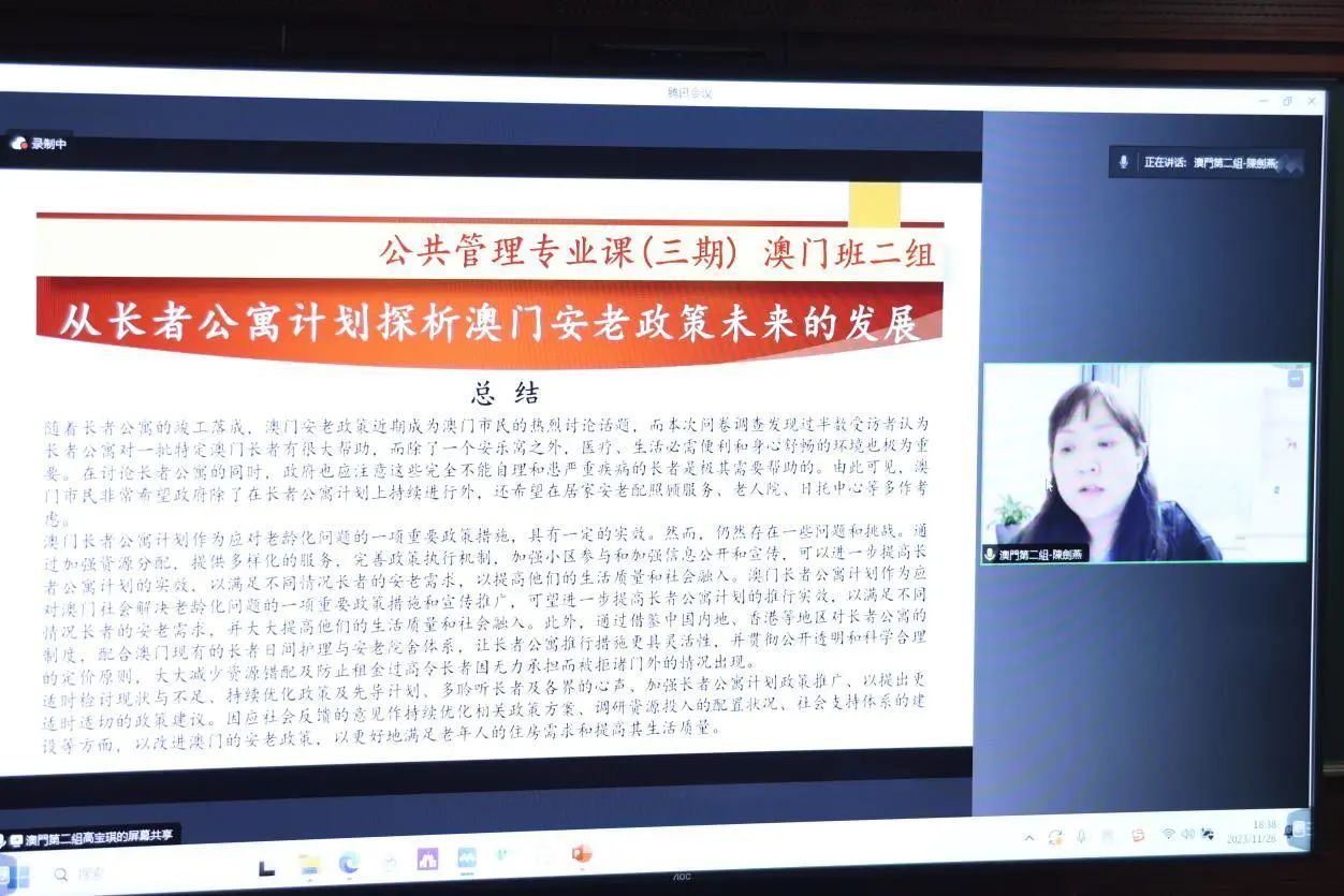 最终,通过评委专家和全体学员的投票选出,第二组《信息聚合视角下的城市灾害协同应对策略研究》、第六组《从长者公寓计划探析澳门安老政策未来的发展》,被评为优秀成果奖。