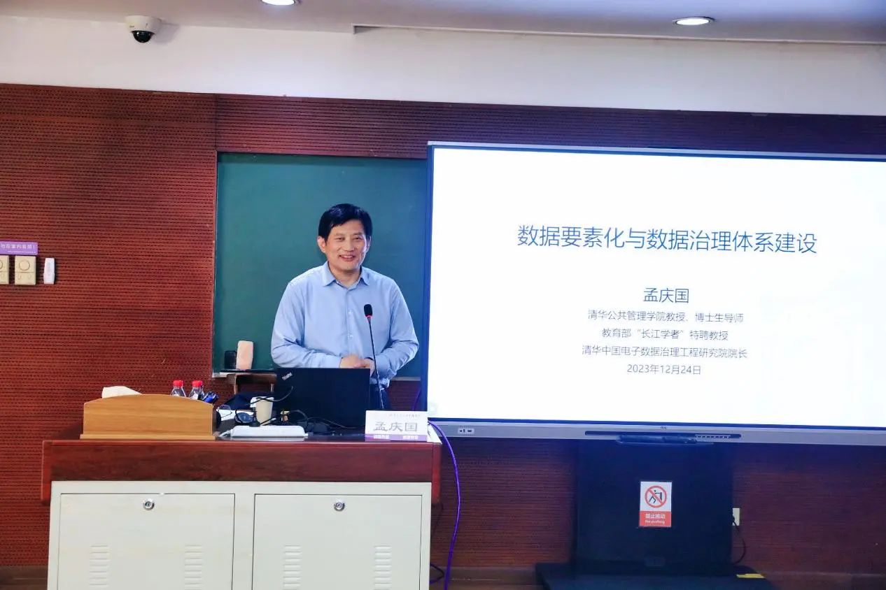 清华公共管理学院教授、博士生导师、清华中国电子数据治理工程研究院院长、研修班学术指导孟庆国为同学们带来了主题为《数据要素化与数据治理体系建设》的精彩授课。孟老师深入浅出地剖析了数字化转型的总体趋势和阶段特征,指出数据成为新型关键生产要素,并就数据要素化及其基础制度建设、公共数据的开放共享与授权运营、国家与地方数据治理体系建设进行了分享。孟老师的讲授激发了同学们的热烈讨论,通过互动交流,加深了对课堂知识的理解与内化。