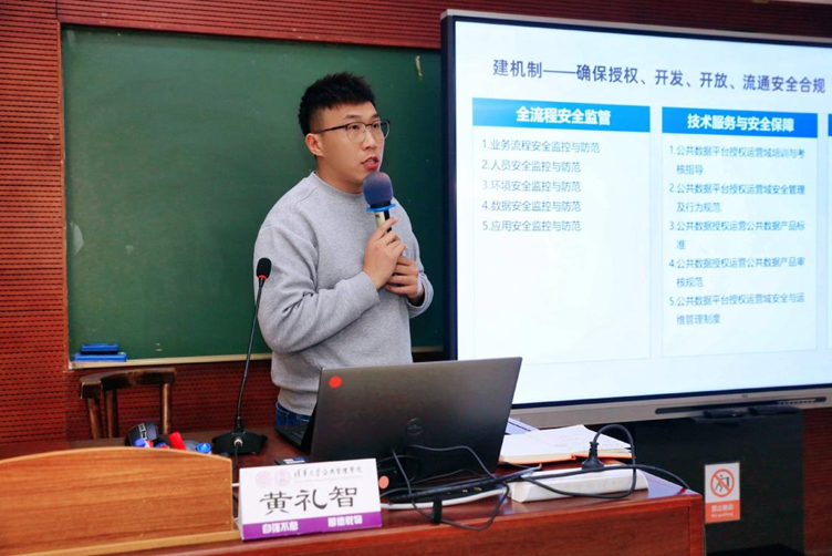 在结业汇报环节,阿里黄礼智、唯品会周禹、百度季石磊代表研修班三个小组,分别从公共数据授权运营、企业合规体系建设、数据要素流通体系建设等专题做成果展示与汇报。