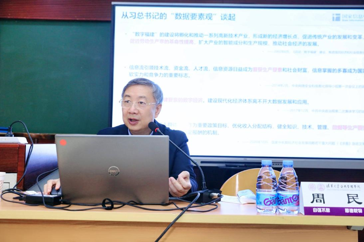 国家信息中心周民副主任以《充分发挥数据要素乘数效应 加快构建数据要素统一大市场》为题,从理论逻辑、制度体系、发展路径等三个主要方面为学员做了细致讲解。周主任从数据要素的诞生背景、意义及历史沿革出发,阐释了数据要素统一大市场的“黄金三角”、五大瓶颈、要素六论、四大辩证关系等理论逻辑,剖析了产权、分配、流通、监管、生态等五位一体的数据基础制度体系,进一步提出了构建数据要素统一大市场的发展路径的思考,即要立足国内、国际两个市场,通过构建数据基础设施、加强数据安全治理,有序推进数据产权制度创新、数据高质量供给、数据高效流通使用、数据要素高水平应用四项关键工作。