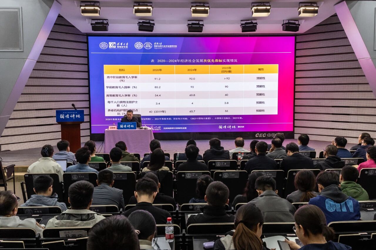 2025年10月16日晚,清华大学国情研究院“国情讲坛”第69讲在清华大学公共管理学院报告厅举行。清华大学文科资深教授、清华大学国情研究院名誉院长胡鞍钢教授发表了题为“对国家‘十四五’规划实施情况的评估”的主旨演讲。活动由清华大学国情研究院、清华大学国家治理与全球治理研究院共同举办。日本名古屋大学特聘教授、清华大学访问教授薛进军,清华大学公共管理学院副院长、长聘副教授、国情研究院副研究员高宇宁等嘉宾出席讲坛并作精彩点评。讲坛由清华大学公共管理学院教授、清华大学国情研究院院长周绍杰主持。光明网提供全程网络直播。