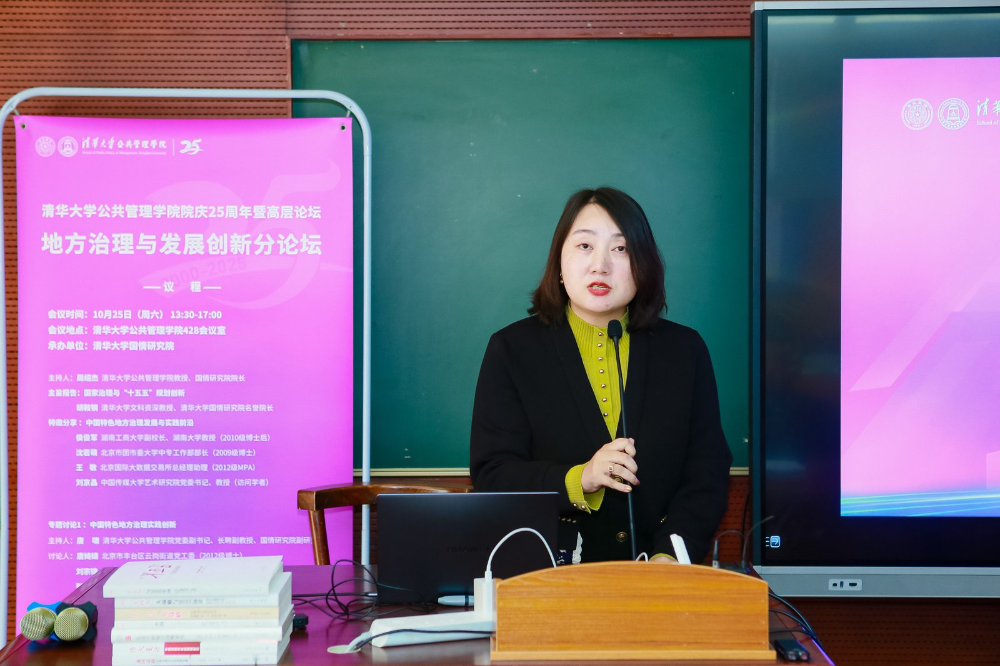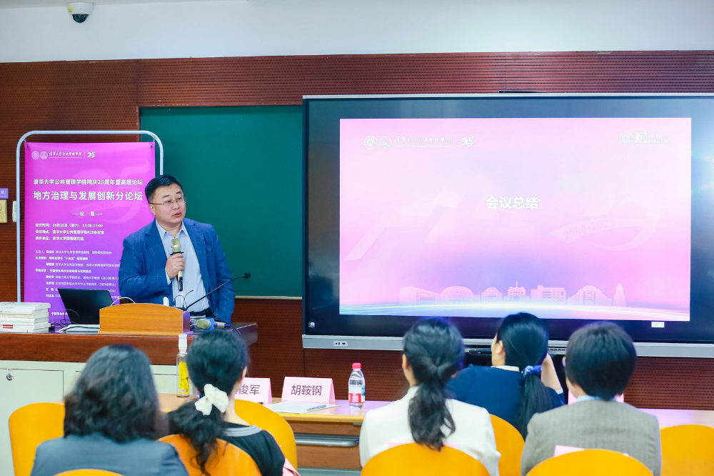 10月25日下午,平行论坛五在清华大学公共管理学院428会议室举办。清华大学文科资深教授、清华大学国情研究院名誉院长胡鞍钢发表主旨演讲。湖南工商大学副校长、湖南大学教授侯俊军,北京市团市委大学中专工作部部长沈若萌,北京国际大数据交易所总经理助理王敏,中国传媒大学艺术研究院党委书记、教授刘京晶围绕“中国特色地方治理发展与实践前沿”进行特邀分享。在清华大学公共管理学院党委副书记、长聘副教授、国情研究院副研究员唐啸的主持下,北京市丰台区云岗街道党工委唐婍婧,天津市委宣传部文艺处刘宗锦,河北省保定市顺平县委张要松,天津市科技局科技金融处吴婧围绕“中国特色地方治理实践创新”展开第一场专题讨论。清华大学公共管理学院副教授、国情研究院副研究员王洪川主持第二场专题讨论,中国人民大学劳动人事学院副教授赵欣彤,中国矿业大学(北京)公共管理系副主任、教授谢起慧,湖南大学公共管理学院国际交流与合作办公室主任、副教授谷浩,苏州大学政治与公共管理学院讲师许凯渤,北京工业大学社会学院讲师李蹊围绕“中国特色地方治理理论创新”进行交流。平行论坛五由清华大学公共管理学院教授、国情研究院院长周绍杰主持。