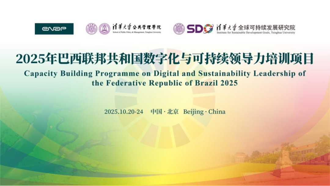 2025年10月20日至10月24日,由巴西国家公共行政学院(Escola Nacional de Administração Pública, ENAP) 与清华大学公共管理学院联合主办,清华大学全球可持续发展研究院(清华SDG研究院)与清华大学公共管理学院干部教育中心共同承办的“2025年巴西联邦共和国数字化与可持续领导力培训项目(Capacity Building Programme on Digital and Sustainability Leadership of the Federative Republic of Brazil 2025)”在清华大学公共管理学院成功举办。共有25名巴西政府司局级官员参加本次培训,学员来自巴西联邦审计法院、参议院、公共服务管理与创新部、财政部、总统府、种族平等部、文化部等9个联邦部委及其下属机构。