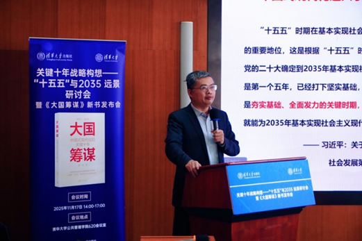 2025年11月17日,由清华大学出版社主办,清华大学习近平新时代中国特色社会主义思想研究院中国式现代化理论研究中心、清华大学国情研究院、观察者网协办的“关键十年战略构想——‘十五五’与2035远景研讨会暨《大国筹谋》新书发布会”在清华大学公共管理学院620会议室举行。