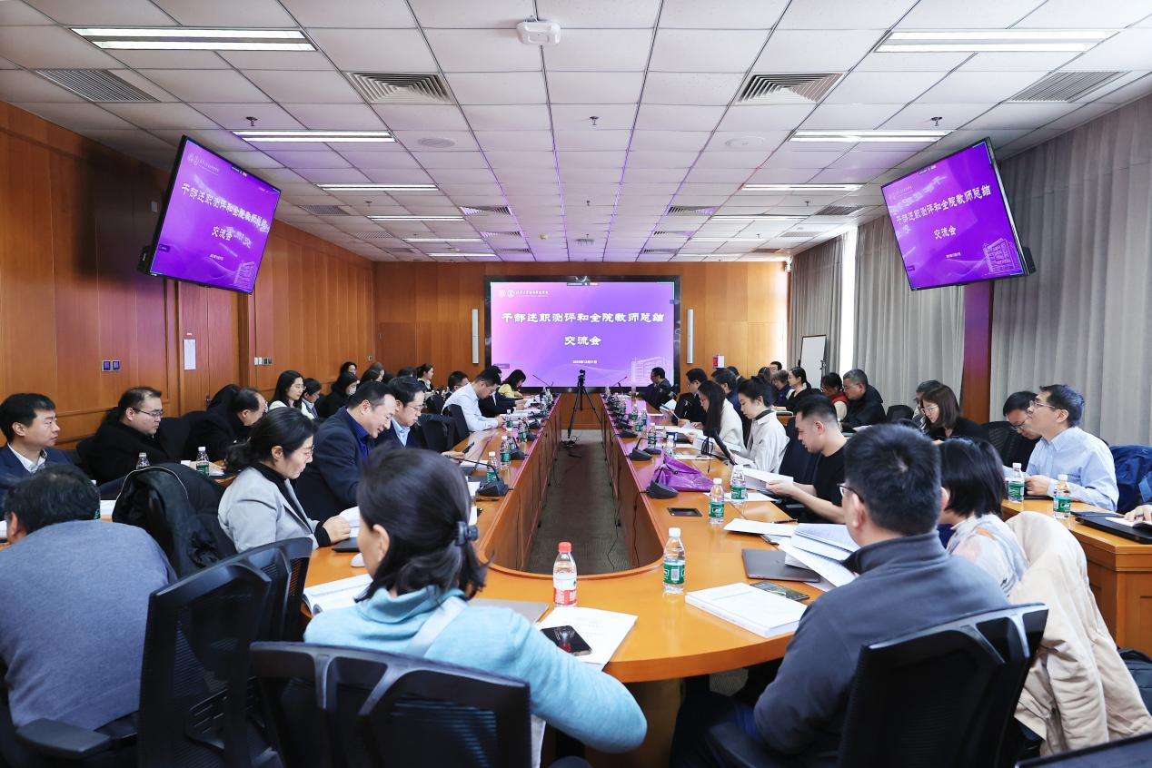 在教师交流环节,学院教师代表张遂新、戴亦欣、孟丽君和舒全峰先后做了个人工作分享。参会人员进行了教师现场互评。随后,朱旭峰和殷成志分别就“十五五”规划、建校115周年、智库建设、国际合作和财务等相关事项作了通报。