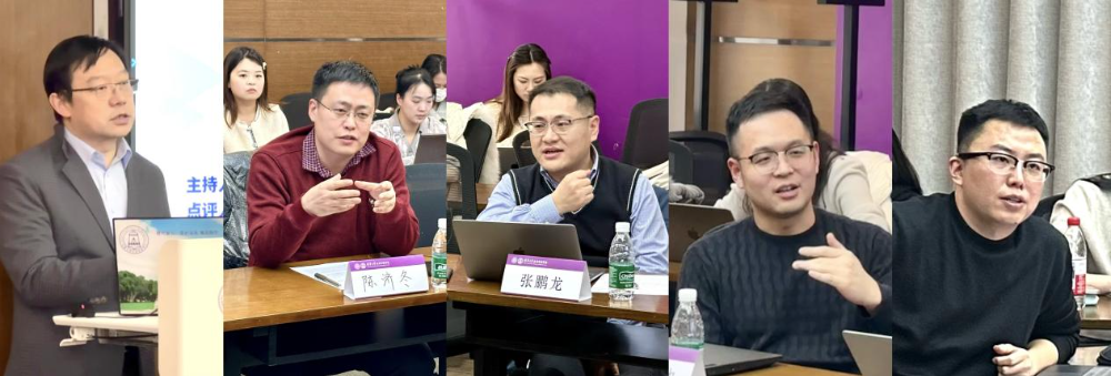 高宇宁(左一)主持,左二至右一分别为陈济冬、张鹏龙、魏文池、龚璞点评本次讲座