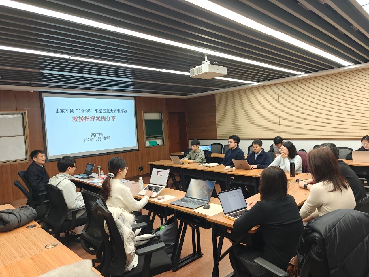 2026年3月5日,“应急沧海”系列闭门研讨会第十四期研讨在清华大学举行。国家安全生产应急救援指挥中心原副主任高广伟以“山东平邑万庄矿区‘12·25’采空区重大坍塌事故救援指挥案例分享”为题作主题分享,本期研讨由清华大学公共管理学院长聘副教授、应急管理研究基地副主任吕孝礼主持,应急管理部离退休干部局史春丽一级调研员、基地相关课题组师生参与研讨。本系列研讨会由清华大学应急管理研究基地与应急管理部离退休干部局联合发起。