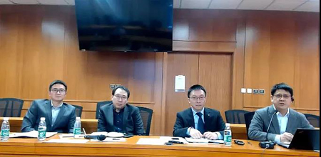 蓝煜昕、张楠、殷成志和曹峰参加会议(从左至右)